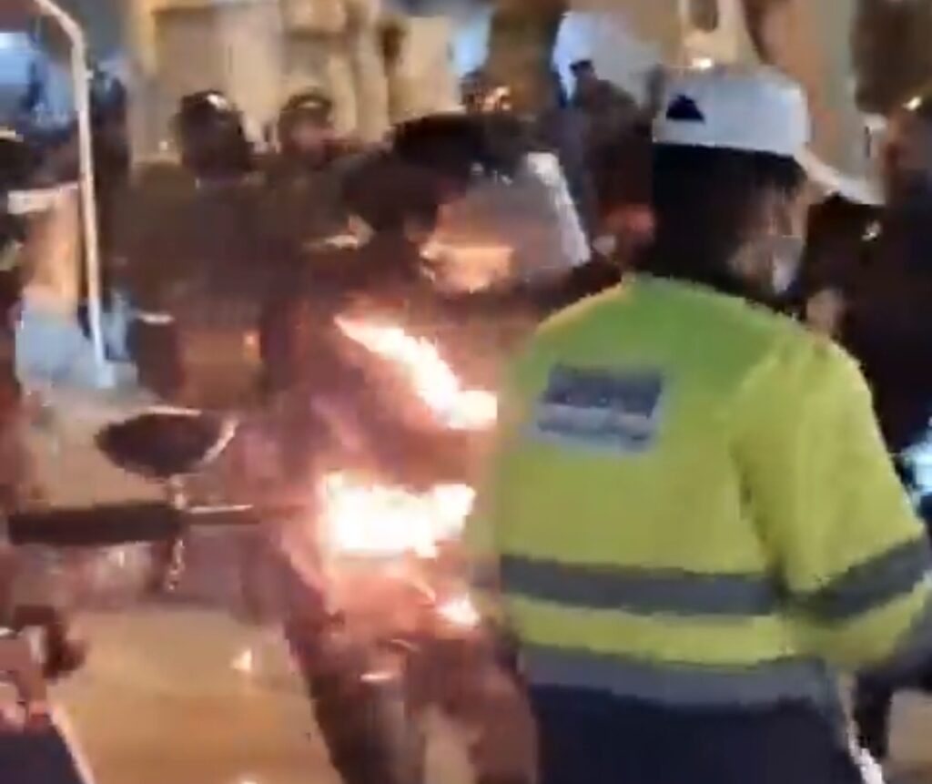 איראן: שוטר במשמרות המהפכה נשרף מבקבוק תבערה שזרקו המפגינים.