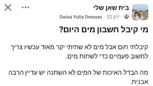 הזעם המקומי לא עוצר רק בגובה החשבון, אלא מופנה גם כלפי האיכות שמתקבלת בתמורה למחיר המופקע. תושבים מלינים על כך שלמרות המעבר לתאגיד והעלייה בתעריפים, המים בברזים נותרו באותה איכות ירודה, כשהם רוויים באבנית כבעבר. "מה ההבדל באיכות? לא השתנה כלום, עדיין יש המון אבנית", קובלת אחת הגולשות, בעוד אחרת מוסיפה בייאוש כי המים הפכו למצרך כה יקר עד שצריך לחשוב פעמיים לפני ששותים אותם.